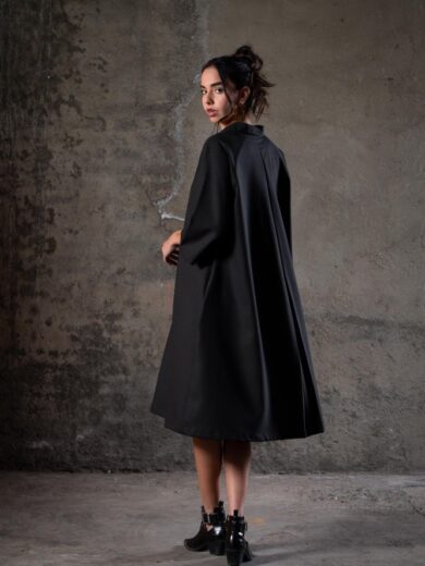 VESTIDO CAMISERO LANA NEGRO LISO