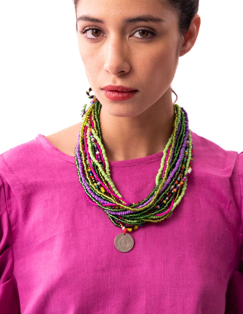 Collar Aldama. Hecho por artesanos de la región de Aldama / Magdalena Chiapas, en shakiras, de colores, con monedas antiguas. Un accesorio muy especial.