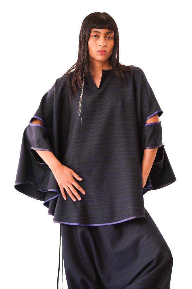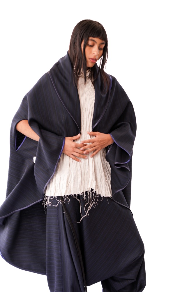 Capa en forma circular inspirada en la Tortilla, para la colección las Hijas del Maíz