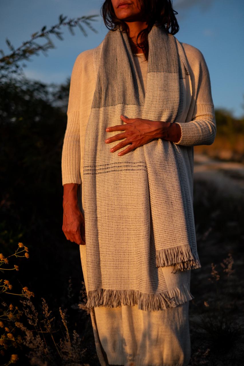 100% baby alpaca, tejido en telar a pedal