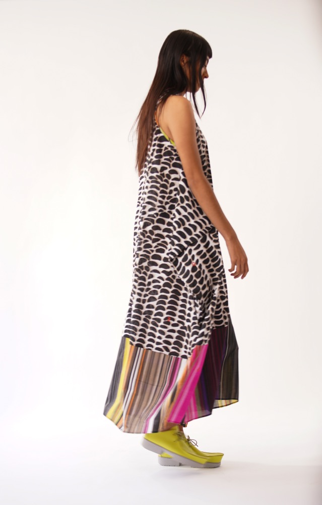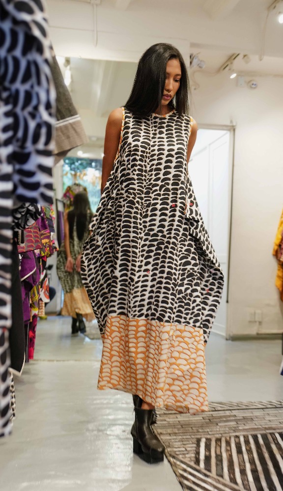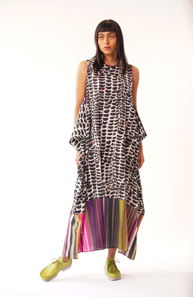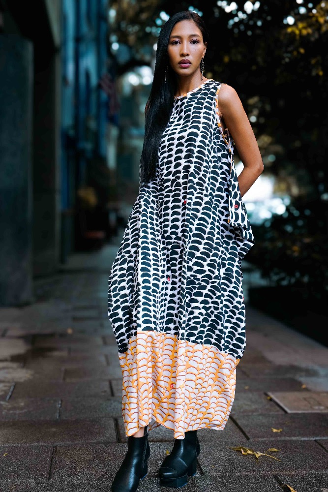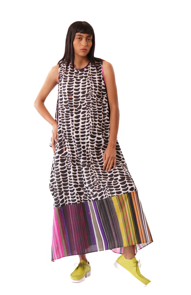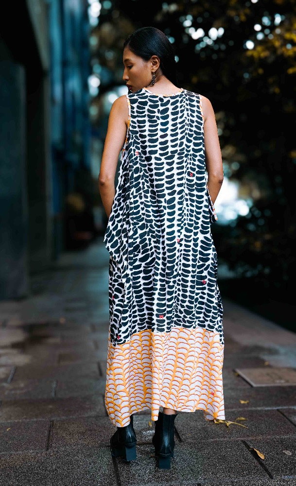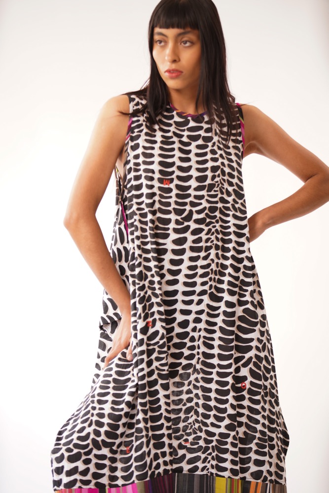 Vestido racu con estampado de maíz blanco y negro